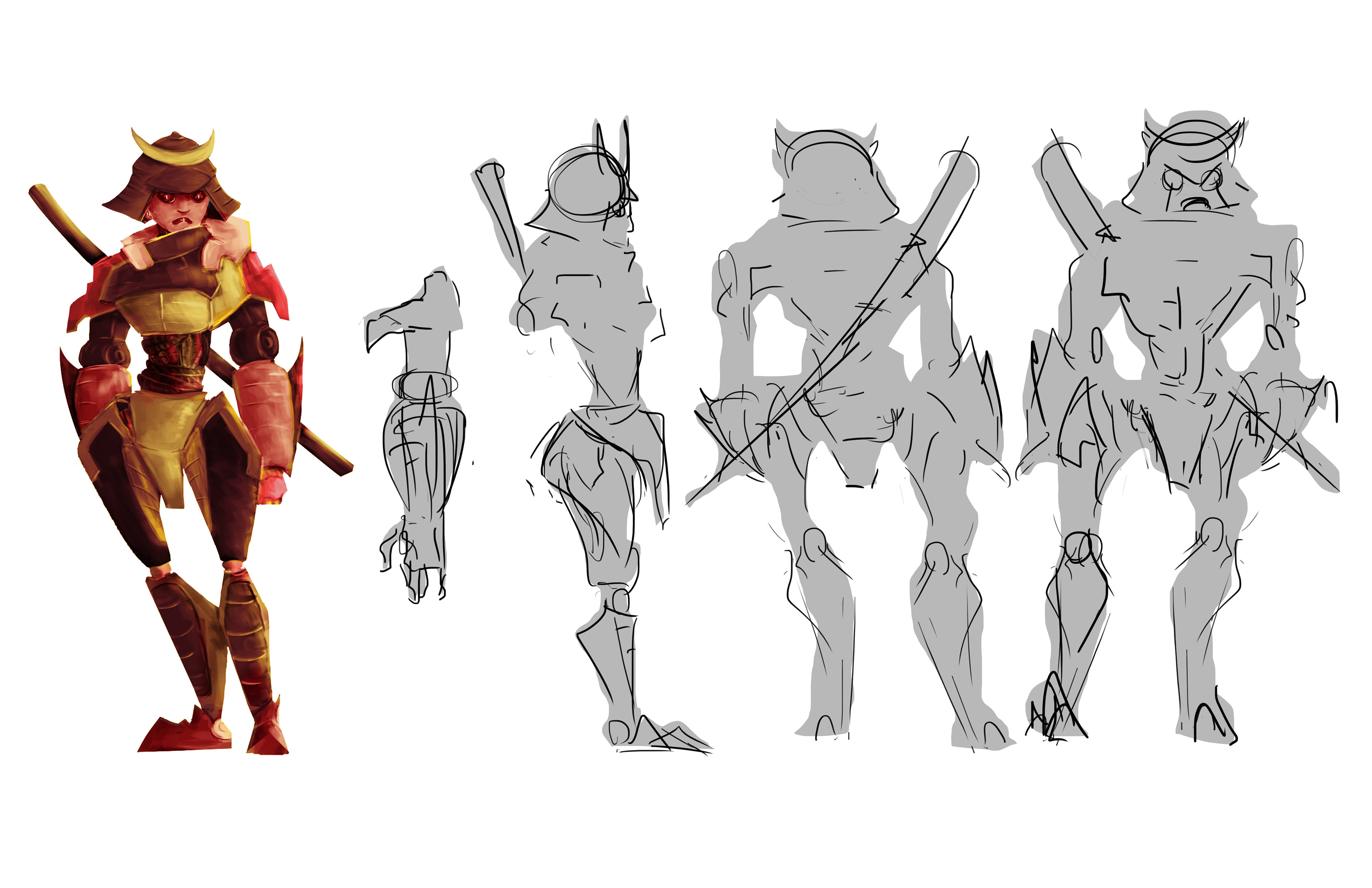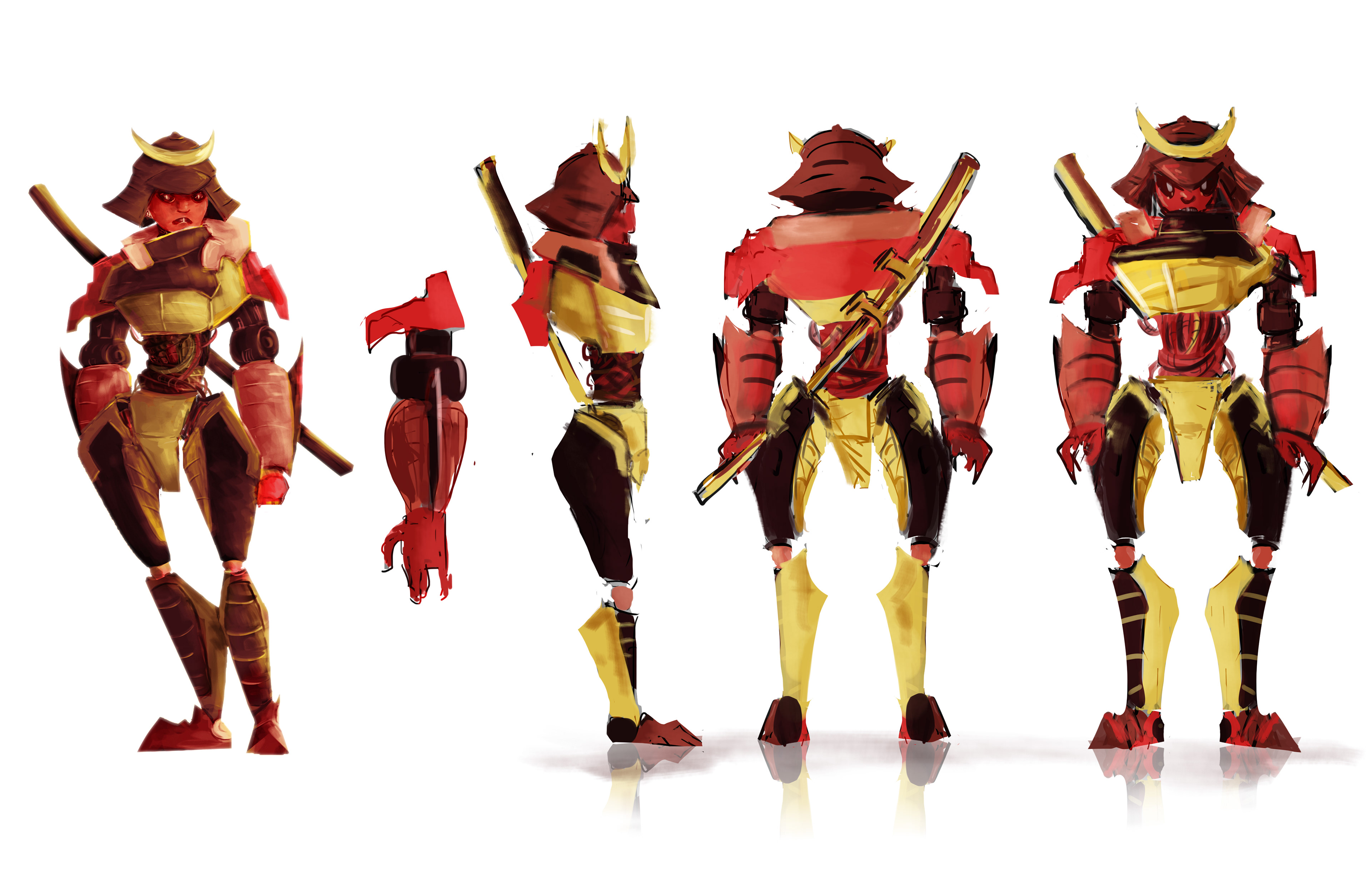 Character turnaround for samurai robot design.