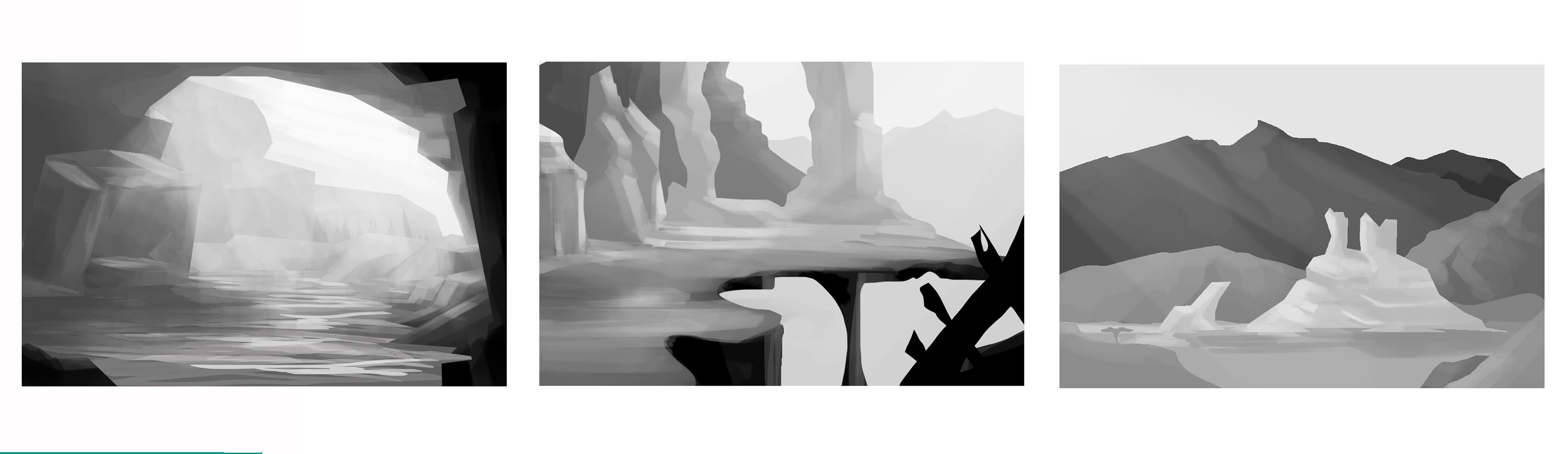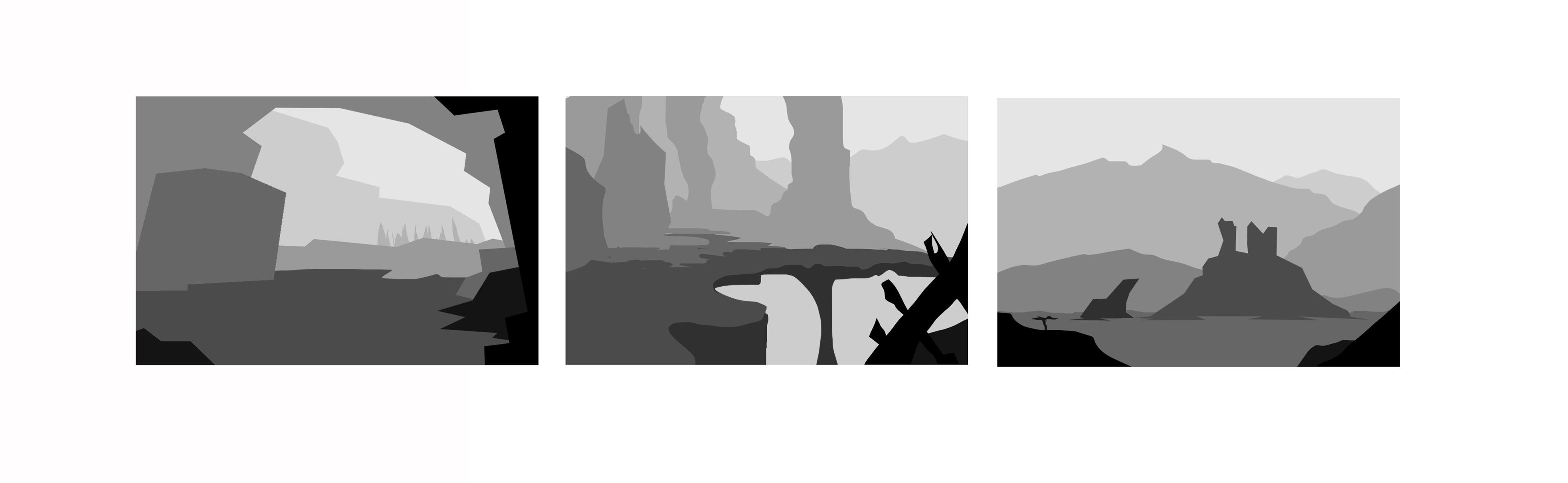 Ten Value Landscapes with basic rendering with sun as focal Point